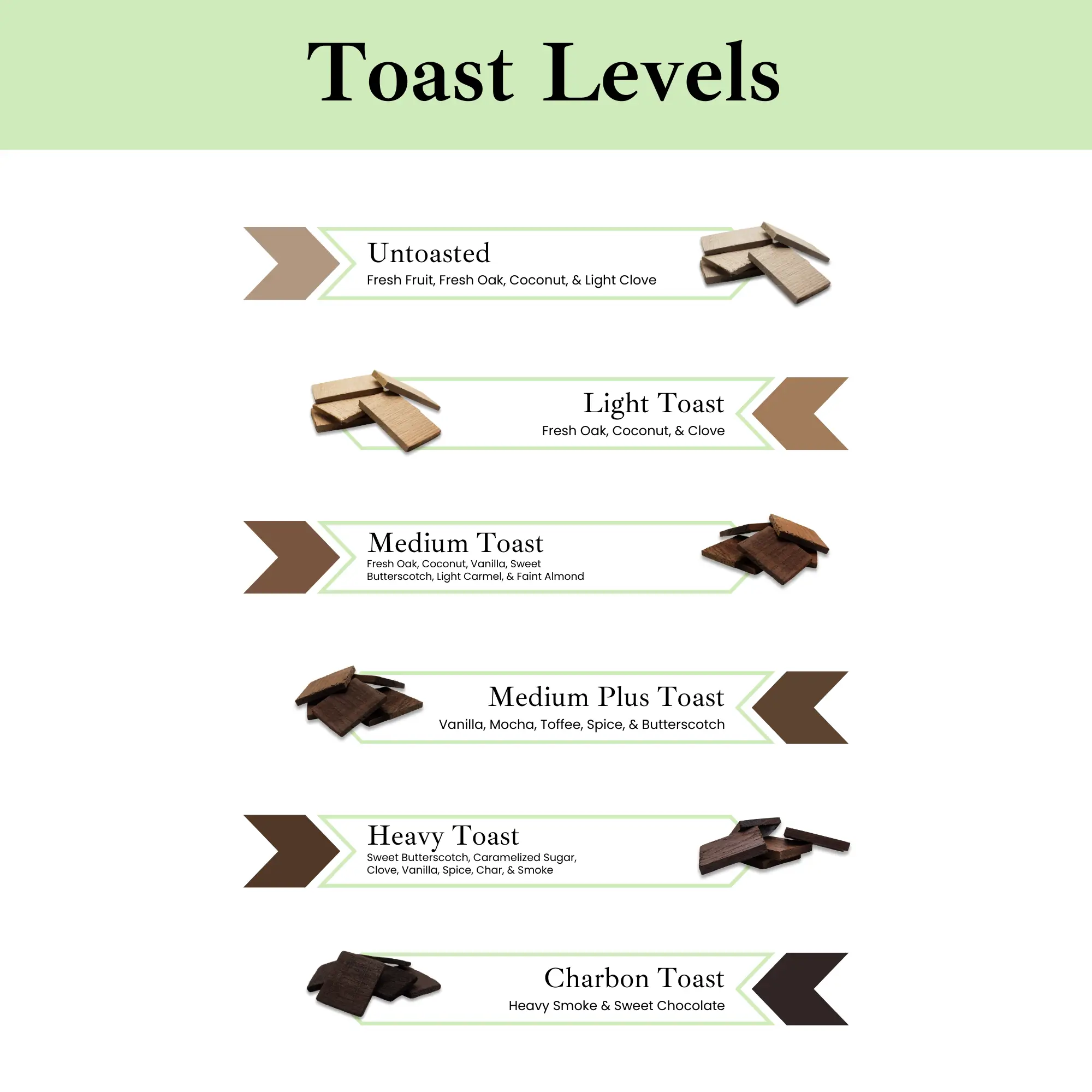 Fusion Series products allow selection of two distinct toast levels (primary and secondary), combined into a controlled blend. Designed for medium- to long-term aging, providing structured, barrel-like extraction through their thicker profile and controlled surface exposure. Segments deliver gradual integration of tannins, toast-derived aromatics, and mouthfeel enhancement.